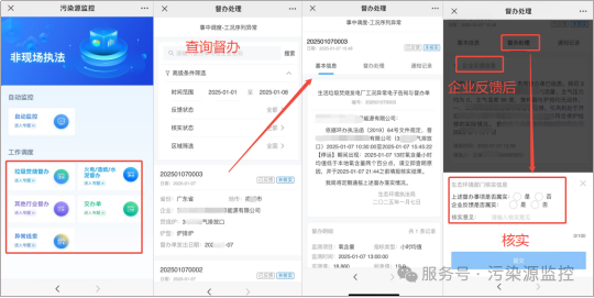 生态环境部门可以查看辖区内所有排污单位所涉及的交办单下发情况,并核实处理交办内容。