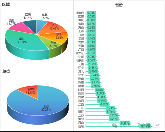 从关注污染源监控微信服务号的用户属性来看,目前绑定自动监控系统账号的企业用户占绝大多数,有40051人,生态环境管理部门用户有5843人。