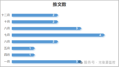 推文年累计阅读量超22.5万次,有9篇的单篇阅读数均超过1万次,其中“污染源自动监测设备的量程”“污染物排放自动监测设备标记规则解读(第一期“故障”标记)”“污染物排放自动监测设备标记规则解读(第二期:“校准”和“核查比对”标记)”阅读数排名前三,可见大多数用户更关注政策解读类内容。