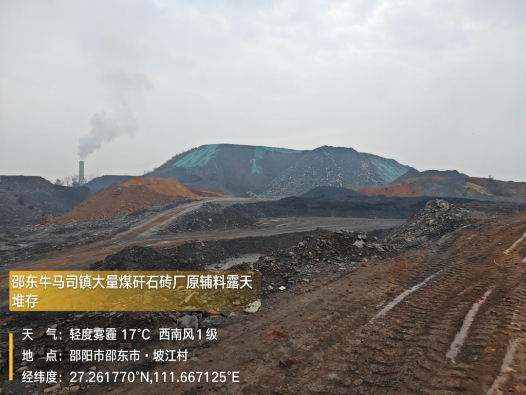 邵东市牛马司镇大量煤矸石堆场以及周边砖厂原辅料长期露天堆存,晴天扬尘污染严重,雨天污水横流