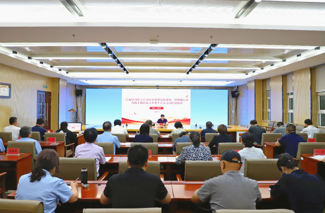 为推动学习贯彻习近平新时代中国特色社会主义思想主题教育走深走实,按照自治区主题教育实施方案安排,7月5日上午,生态环境厅党组成员、副厅长郝庆文围绕学习领会习近平总书记考察内蒙古重要讲话精神,以“自觉用习近平总书记重要讲话精神统一思想和行动,为筑牢我国北方重要生态安全屏障建新功”为题,为分管处室、单位党员干部讲授专题党课。